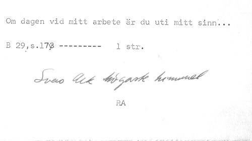 //// Om dagen vid mitt arbete är du uti mitt sinn'. . . //// * //// B 29, s . 17$--- 1 str. //// «- //// RA ////