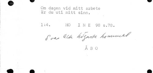 //// Om dagen vid mitt arbete är du uti mitt sinn, //// > //// 1:4. HO I N E 98 s.78. //// ÅBO ////