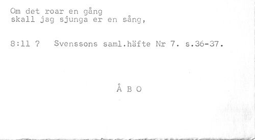 //// Om det roar en gång //// skall jag sjunga er en sång, //// 8:11 ? Svenssons saml.häfte Nr 7. s.36-37. //// ÅBO ////