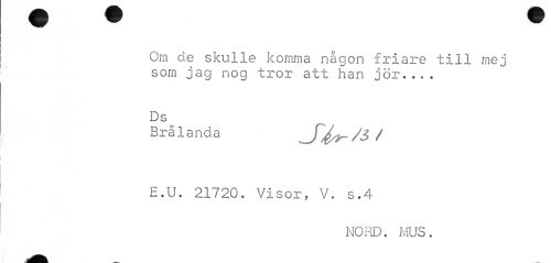 //// Om de skulle komma någon friare till rnej som jag nog tror att han jör... //// D s _ //// Brälanda t //// E.U. 21720. Visor, V. s.4 //// NORD. MUS. ////