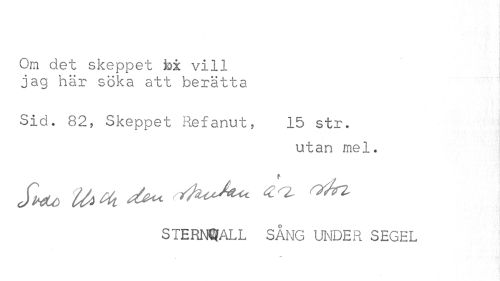 //// Om det skeppet bi vill jag här söka att berätta //// Sid. 82, Skeppet Refanut, 15 str. //// utan mel. //// STERNWALL SÅNG UNDER SEGEL ////