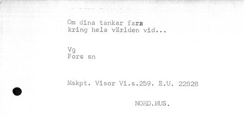 //// 1% T ^ n <r m • -r $ — - //// Om dina tankar fara kring hela världen vid... //// Vg //// Fors sn //// Mskpt. Visor Vi.s.259- E.U. 22828 //// NORD.MUS. ////