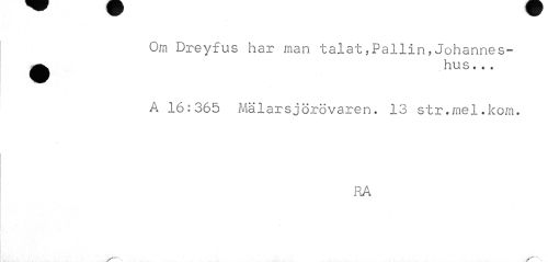 //// Om Dreyfus har man talat,Pallin,Johannes-^ hus... //// A 16:365 Mälarsjörövaren. 13 str.mel.kom. //// RA ////