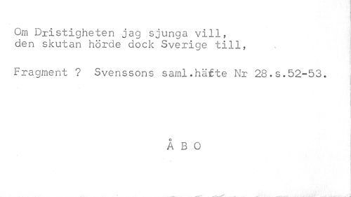 //// \ //// Om Dristigheten jag sjunga vill, den skutan hörde dock Sverige till, //// Fragment ? Svenssons saml.häfte Nr 28.s.52-53. //// ÅBO ////