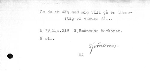 //// " ' ... //// . . . //// Om du en väg med mig vill gå en törnestig vi vandra få... //// B 79^2,s.219 Sjömannens hemkomst. 8 str. //// \ ////