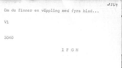 //// Om du finner en väppling med fyra blad... //// i //// VI //// V //// 3040 //// I F G H ////