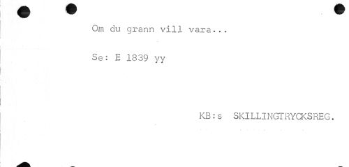 //// Om du grann vill vara... //// u //// Se: E 1839 yy //// KB:s SKILLINGTRYCKSREG. //// / ////