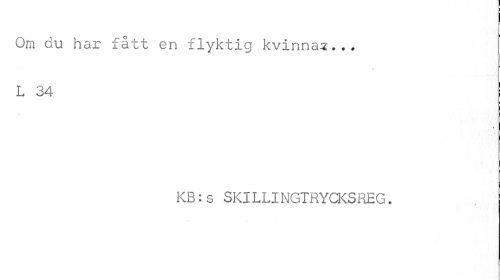 //// Om du har fått en flyktig kvinnan... L 34 //// KB:s SKILLINGTRYCKSREG. ////