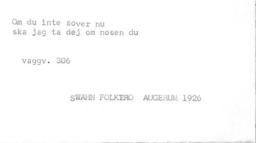 //// Om du inte sover nu //// ska jag ta dej om nosen du //// vaggv. 306 //// SWAHN F0LK1R0 AUGERUM 1926 ////