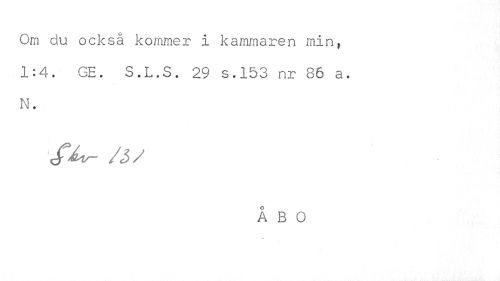 //// Om du också kommer i kammaren min, 1:4. GE. S.L.S. 29 s.153 nr 86 a. N. //// ÅBO ////