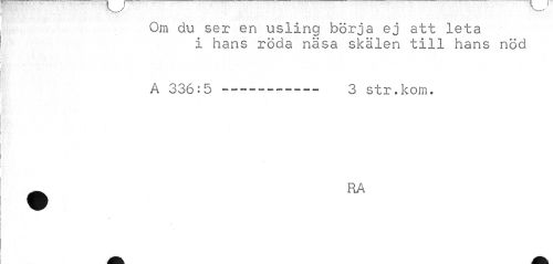 //// Om du ser en usling börja ej att leta //// i hans röda näsa skälen till hans nöd //// A 336:5 --- 3 str.kom. //// RA ////