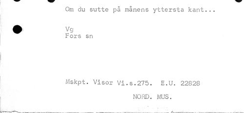 //// Om du sutte på månens yttersta kant... ^^ Fors sn //// Mskpt. Visor Vi.s.275. E.U. 22828 //// NORD. MUS. //// i //// ¦...• ¦ . - x ' " '' ////