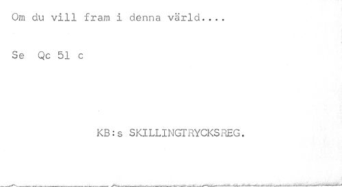 //// Om du vill fram i denna värld... //// 4 //// Se Qc 51 c //// KB:s SKILLINGTRYCKSREG. //// __-___... ___ „ ¦ ., . „ , , . --*---.---—-—-——-A ////
