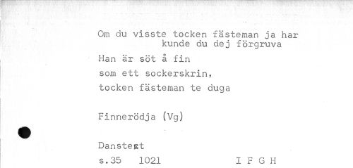 //// •»r ata //// ¦ //// * " "n». //// Om du visste töcken fästeman ja har //// kunde du dej förgruva //// Han är söt å fin //// \ //// som ett sockerskrin, töcken fästeman te duga //// Finnerödja (Vg) //// Danstest //// s.35 1021 I F G H ////