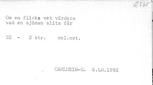 //// pc //// . Om en flicka vet värdera vad en sjöman slita får //// 32 - 2 str. mel.not. //// CARLHEIM-G. S.LM.1892 //// / ////