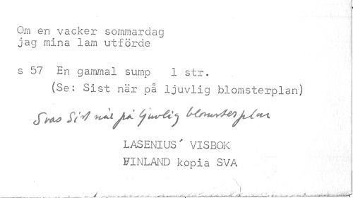 //// Om en vacker sommardag jag mina lam utförde //// s 57 En gammal sump 1 str. //// (Se: Sist när på ljuvlig blomsterplan) //// jMéU* f/ J ^fc^^jU^ //// LASENIUS' VISBOK FINLAND kopia SVA //// ¦ //// - - 1 //// / _ ^ 1 ^ - i. _.—___—---L.___ ..J_;___^.J**»---Ji—U - ^ ---»W Wi» r ////