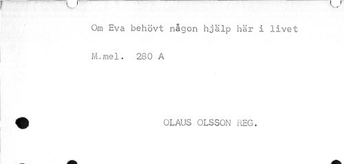 //// Om Eva behövt någon hjälp här i livet M.mel. 280 A //// ^ OLAUS OLSSON REG. ////