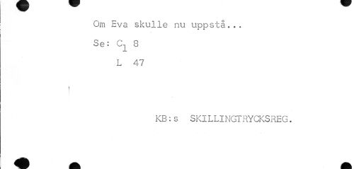 //// Om Eva skulle nu uppstå... Se: C1 8 //// L 47 //// j //// I //// KB:s SKILLINGTRYCKSREG. ////