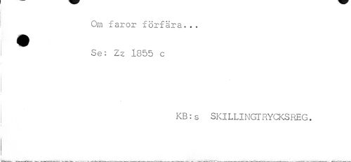 //// Om faror förfära... Se: Zz 1855 c //// KB:s SKILLINGTRYCKSREG. ////