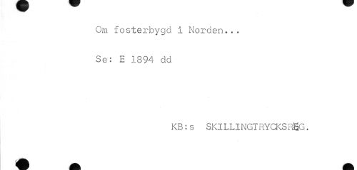 //// Om fosterbygd i Norden... Se: E 1894 dd //// KB:s SKILLINGTRYCKSR5G. ////