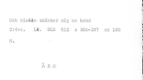 //// j I //// Och himlån skänker mig en brud //// ! //// 2:4+r. . LE. SLS 512 s 386-387 nr 180 I //// i //// N. //// i I //// i //// Å B. O ////