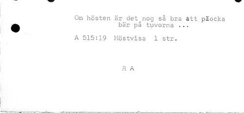 //// Om hösten är det nog så bra att plocka ^ bär på tuvorna •.. //// A 515:19 Höstvisa 1 str. //// R A //// —---r-——» .. ---—---,—___. ... . ---. __ . ... ////