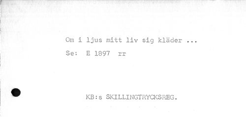 //// Om i ljus mitt liv sig kläder ... Se: E 1897 rr //// ® KB:s SKILLINGTRYCKSREG. ////