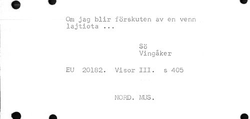 //// Om jag blir förskuten av en venn lajtiota ... //// SÖ //// Vingåker EU 20182. Visor III. s 405 //// NORD. MUS. ////