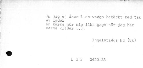 //// ¦ //// ¦ //// \'i S, ' • '¦ V '*. //// Om jag ej åker i en va^gn betäckt med tak av läder //// en kärra gör mig lika gagn när jag har. -varma kläder ... //// Ingelsta/ds hd (Sk) L U F 3420:38 ////