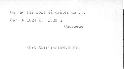 //// Om jag far bort så gråter du ... [ //// Se: N 1824 k, 1823 h //// Choraeus KB:S SKILLINGTRYCKSREG. ////