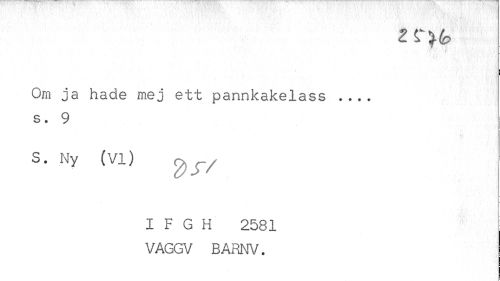 //// mm //// "i ¦¦ v'jäi //// Om ja hade mej ett pannkakelass ... s. 9 //// S. Ny (VI) //// I F G H 2581 VAGGV BARNV. ////