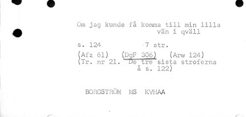 //// Om jag kunde få komma till min lilla //// van i qvall //// s. 124 -7 str. //// (Afz 61) (DgF 306) (Arw 124) (Tr. //// nr 21. De tre sista stroferna //// å s. 122) //// BORGSTRÖM MS KVHAA ////