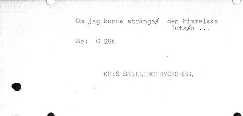 //// Om jag kunde stränga/ den himmelska //// luta/n ... //// * , Ki- //// Se: G 286 //// / //// KB:S SKILLINGTRYCKS REG. ////