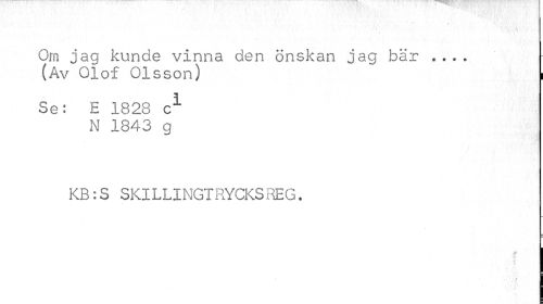 //// Om jag kunde vinna den önskan jag bär ... //// (Av Olof Olsson) ~ i //// Se: E 1828 c1 //// N 1843 g //// KB:S SKILLINGTRYCKSREG. //// JJ //// .A u //// . . < | ////