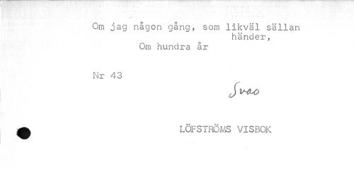 //// . ... . ¦. //// Om jag någon gång, som likväl sällan //// händer, //// Om hundra år //// Nr 43 //// J WtO //// a LÖFSTRÖMS VISBOK ////
