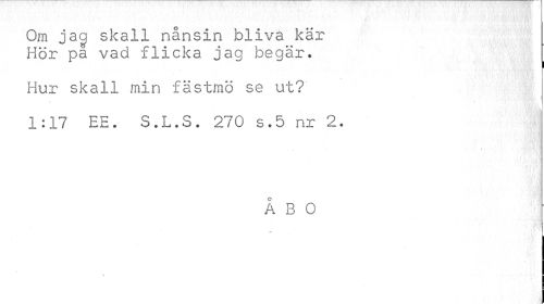 //// Om jag: skall nånsin bliva kär Hör pa vad flicka jag begär. //// Hur skall min fästmö se ut? //// 1:17 BE. S.L.S. 270 s.5 nr 2. //// ÅBO ////