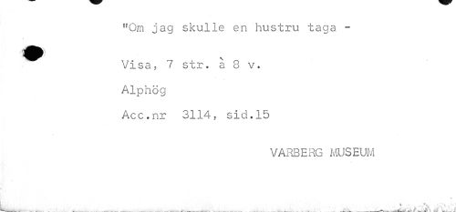 //// ffQm jag skulle en hustru taga -Visa5 7 str. a 8 v. //// Alphög //// Acc.nr 3114, sid.15 //// VARBERG MUSEUM //// i //// . 1 1 -V- -v 4 ___ . . . . ___ — ___—. ... —__^ * . - . j. ////