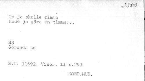 //// js~ro //// Om ja skulle rimma , //// Hade ja göra en timma... //// Sö //// Sorunda sn //// E.U. 11692. Visor, II s.293 j //// NORD.MUS. ////