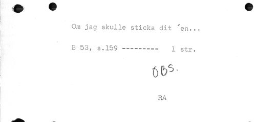 //// Om jag skulle sticka dit 'en... //// * //// B 53, s.159---— 1 str. //// RA ////