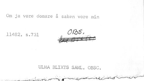 //// Om ja vore domare å saken vore min //// ¦ //// 11482, s .731 ^ //// ULMA BLIXTS SAML. OBSC. //// w. ¦.¦ « • i //// _ ; —, -—- ... ////