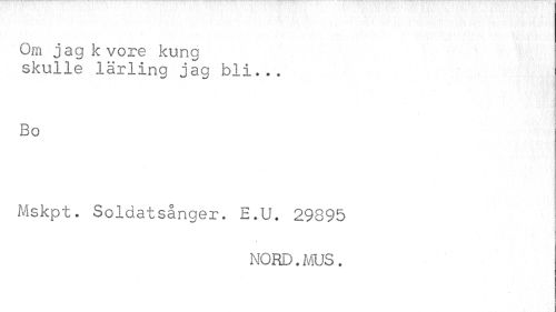 //// Om jag k vore kung skulle lärling jag bli... //// Bo //// Mskpt. Soldatsånger. E.U. 29895 //// NORD.MUS. ////