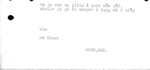 //// Om ja vur se litta å inte kun söf, skulle ja gå åt skogen å bygg mä ä stug //// Vrm //// HA Visor //// NORD.MUS. //// l //// ---—---»—---—---—--^——-——---——--- * ...--- - * - • ---¦--— ^ ^--m ////