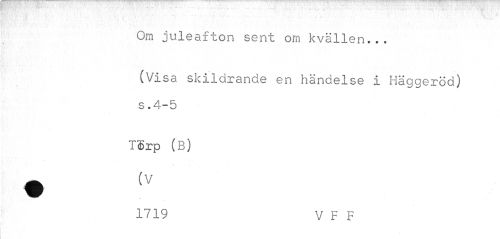 //// n. " •• //// - //// Om juleafton sent om kvällen... //// ¥ ' . ' • 1 //// (Visa skildrande en händelse i Häggeröa) s .4-5 //// T$rp (B) //// 1719 V F F ////