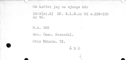 //// Om kaffet jag nu sjunga bör //// 10:4(el.8) DF. S.L.S.nr 82 s.229-230 nr 96. //// N.s. 383 //// tu //// Re c. Oman, Rosendal. Otto Ekholm, TE. ® ÅBO //// i: ////
