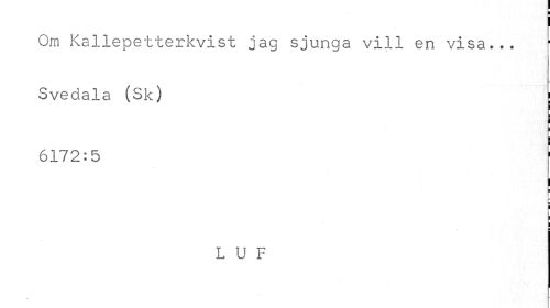 //// I //// Om Kallepetterkvist jag sjunga vill en visa... //// Svedala (Sk) ; //// ¦ //// ¦ i //// 6172:5 //// L U F ////