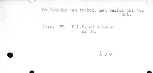 //// Om Kronoby jag tycker, men foarför gör jag //// det, //// 16:4. EE. S.L.S. 47 s.28-30 //// nr 30. ////