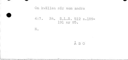 //// Om kvällen när som andra //// 4:7. PA. S.L.S. 512 s.189- //// 191 nr 85. //// N. //// ÅBO ////