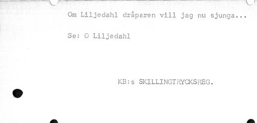 //// Om Liljedahl dråparen vill jag nu sjunga..- //// j //// Se: O Liljedahl //// KB:s SKILLINGTRYCKSREG. ////