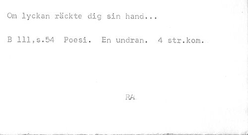 //// ,'m //// Om lyckan räckte dig sin hand... B 111,s.54 Poesi. En undran. 4 str.kom. //// RÅ ////