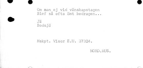 //// Om man ej vid vänskapstagen Blef så ofta ömt bedragen... //// Bodsjö //// Mskpt. Visor E.U. 37324. //// NORD.MUS. //// « //// .---V • ^---v ////